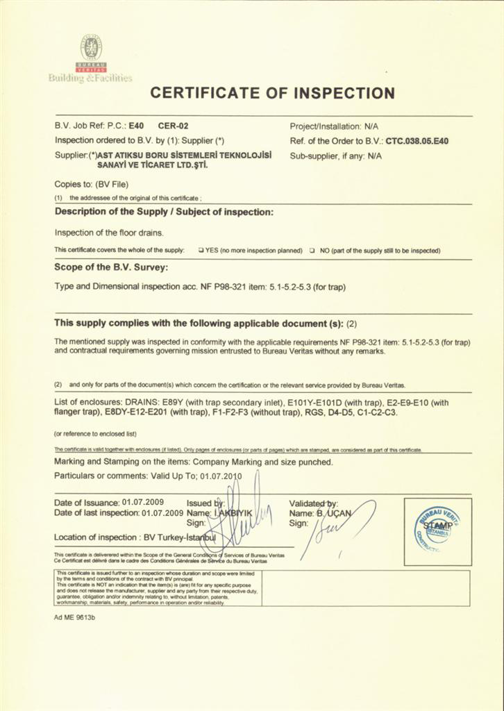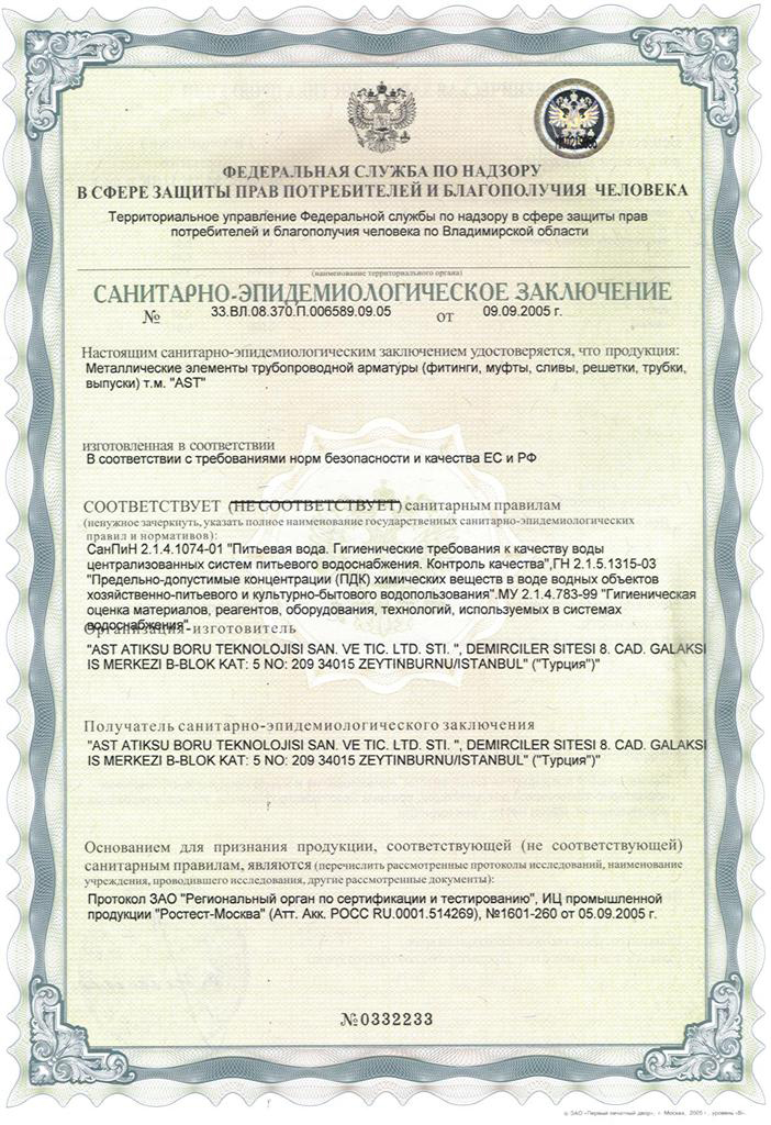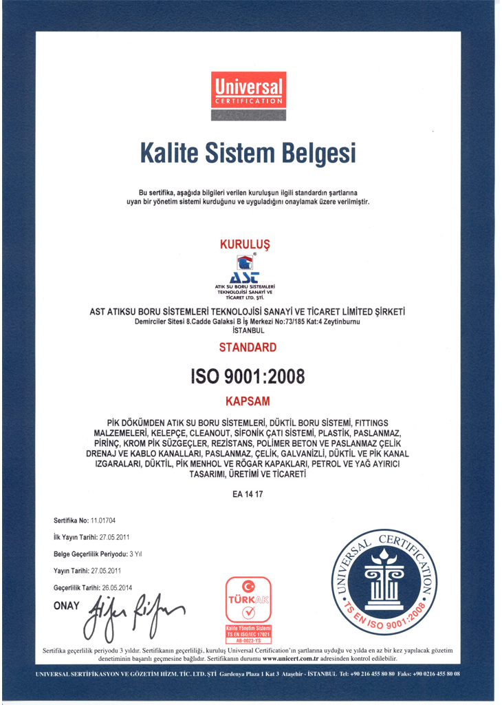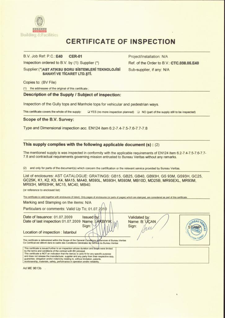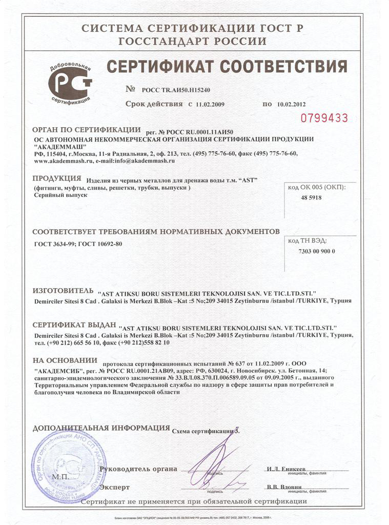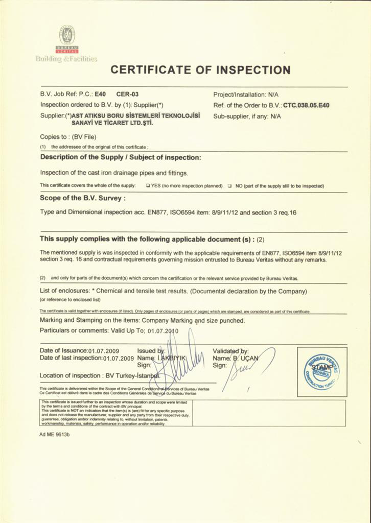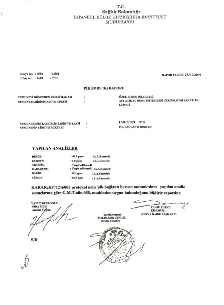 AST Sağlık Bakanlığı Boru Sertifikası 2009